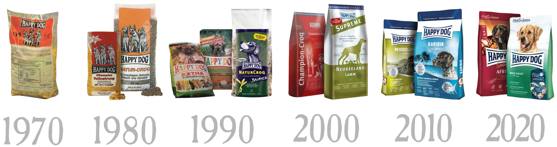 Happy Dog entered the super-premium segment for dog food with Supreme Salmon and Rabbit. The first sensitive varieties were Ireland, Toscana and New Zealand.