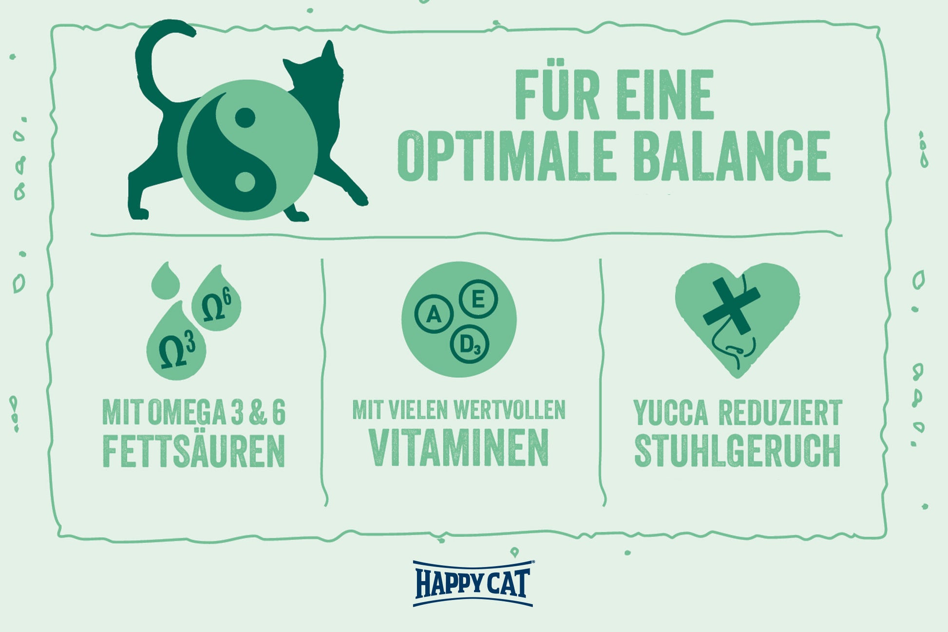 Our Happy Cat Minkas Perfect Mix is a particularly well-balanced complete food for adult cats. With tasty poultry, fine lamb and delicious fish, this dry food adds excitement to your cat’s diet. The tasty kibble mix is well accepted and well tolerated. Our recipe, with its high proportion of high-value animal protein, is 100% natural and balanced. This delicious dry food has many vitamins and minerals, and supports the immune system. Our recipes are naturally free from artificial flavourings and preservatives.