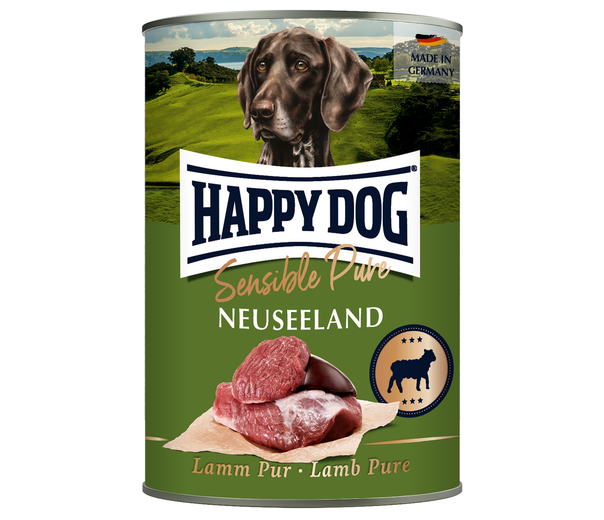 Would you like to add more variety to your four-legged friend’s menu to pep up his dry food? Then simply replace some of the dry food with a portion of wet food to bring extra moments of enjoyment to your pet’s bowl. Happy Dog Sensible Pure Neuseeland is perfect for combining with our Happy Dog Sensible Neuseeland dry food (Lamb & Rice).