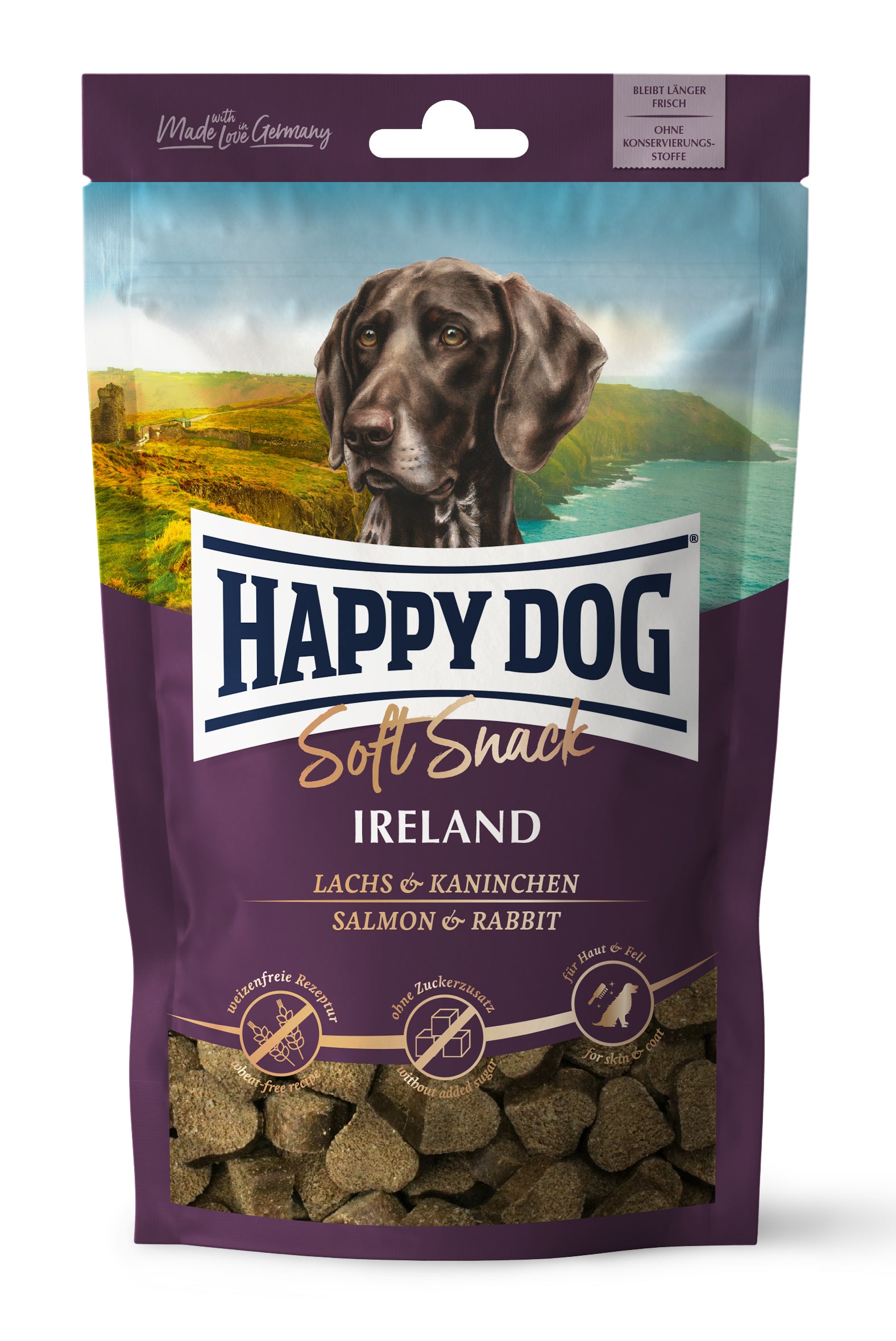Looking for a suitable snack for a dog treat? Try the heart-shaped Soft Snack Ireland – it’s the perfect treat for your pet or as a little meal for those in-between times. The delicate salmon and tasty rabbit are delicious, and the Omega-3 and Omega-6 fatty acids encourage a glossy coat. The wheat-free recipe is well-tolerated by sensitive as well as hard-to-please dogs from medium and large breeds. These snacks are made without added sugar and are preservative-free. The bag has a handy resealable closure for longer-lasting freshness. Guaranteed enjoyment!